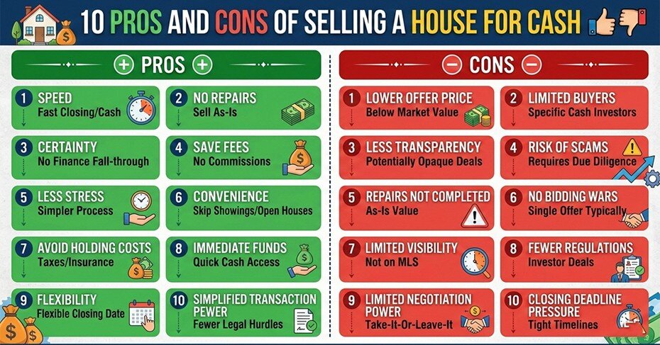 Selling your home for cash sounds simple on the surface. No banks, no waiting, no drama. But like any major financial decision, it comes with real trade-offs worth understanding before you commit. Whether you are facing a tough deadline, dealing with a property that needs work, or just want a clean exit, knowing the full picture helps you make the right call. Here are the 10 most important pros and cons of selling the house before foreclosure or any other situation where a cash sale is on the table.